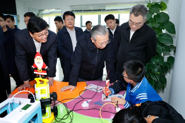 2018年11月,山東省委書記劉家義,赴中印硅谷-創客研學基地與參加研學活動的孩子們進行交流,了解活動的開展情況。 |