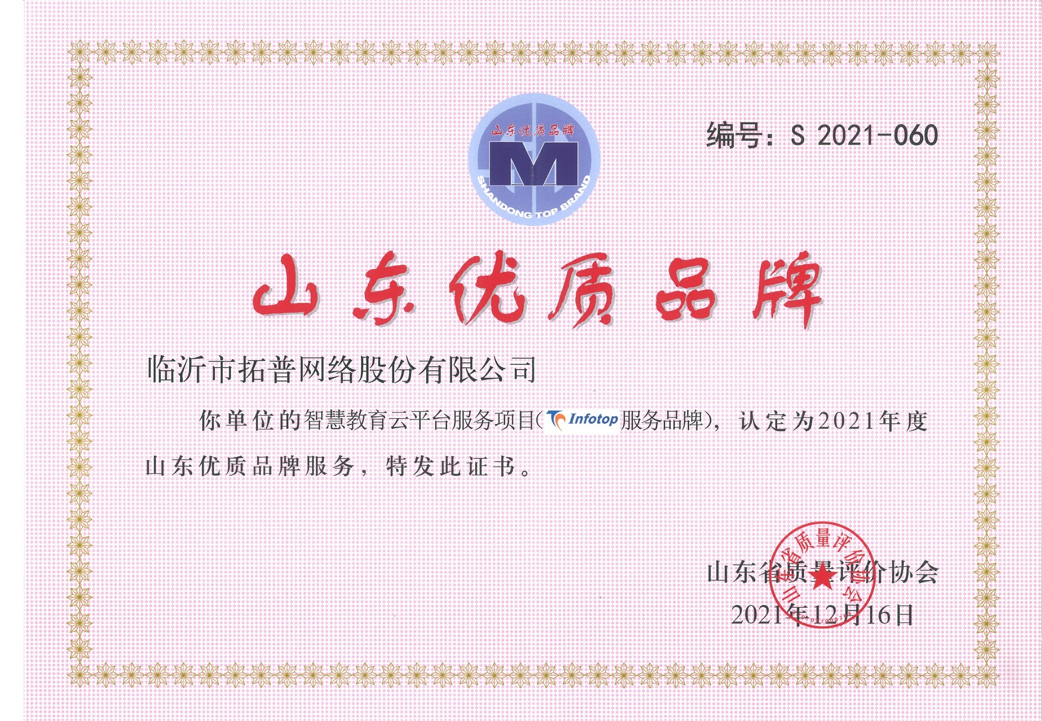 智慧教育云平臺認定為2021年度山東優質品牌服務