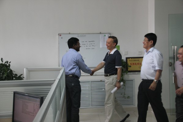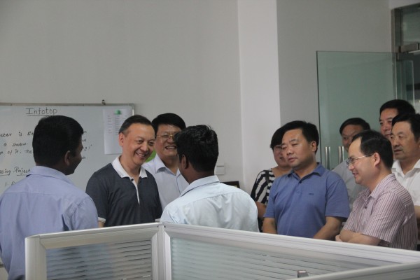 2012年7月15日下午,國家外專局經(jīng)技司副司長易凡平、國家外專局經(jīng)技司管理處副調(diào)研員陳揚(yáng)、山東省外國專家局局長劉杰、山東省外國專家局綜合處副處長董續(xù)光領(lǐng)導(dǎo)一行在臨沂市人社局副局長、黨組副書記楊景林、臨沂市人社局副局長、外國專家局局長密守勇、臨沂市外國專家局副局長闞吉廷、呂振云、臨沂市外專局引智綜合科科長林錦云、開發(fā)區(qū)人力資源服務(wù)局局長劉發(fā)舜等領(lǐng)導(dǎo)的陪同下來我公司視察指導(dǎo)工作。 國家外專局領(lǐng)導(dǎo)一行在公司會(huì)議室聽取了張金剛經(jīng)理關(guān)于臨沂市拓普網(wǎng)絡(luò)有限公司關(guān)于引智工作情況的匯報(bào)。張經(jīng)理分別從公司簡介、人才引進(jìn)、留住人才、引智項(xiàng)目、今后打算等五大方面向各位領(lǐng)導(dǎo)進(jìn)行了一一匯報(bào)。公司王總則向易司長等各位領(lǐng)導(dǎo)詳細(xì)講解了外籍人才引進(jìn)后的工作、生活等各個(gè)方面的情況,表示,無論從工作環(huán)境上、生活環(huán)境上、人文關(guān)懷上,公司都給予了全方位、具體化的安排和規(guī)劃,讓外籍專家排除后顧之憂,全身心的投入到研發(fā)工作中去。 易司長在觀看完公司引智工作匯報(bào)后,對我公司的引智工作給予了高度認(rèn)可和評價(jià),對我公司能一次性引進(jìn)如此大的外籍研發(fā)團(tuán)隊(duì)給予了極大的鼓勵(lì)和贊揚(yáng)。并指出,通過外籍專家的引進(jìn),利用外國先進(jìn)的研發(fā)理念和技術(shù),通過成果轉(zhuǎn)化來提升我國軟件行業(yè)的研發(fā)水平。 易司長鼓勵(lì)我公司加強(qiáng)外籍專家的技術(shù)成果轉(zhuǎn)化,積極申報(bào)國家級(jí)、省級(jí)高端外國專家項(xiàng)目,并表示,國家外專局在高端專家項(xiàng)目的申報(bào)上將給予大力支持和幫助。 會(huì)后,領(lǐng)導(dǎo)一行參觀了外籍專家的辦公場所,并與外籍專家進(jìn)行了親切的交談。領(lǐng)導(dǎo)仔細(xì)詢問了各位專家的在華工作、生活等各方面情況,外籍專家都一一作了回答。外籍專家對領(lǐng)導(dǎo)的慰問表示感謝,并表示將努力工作,通過自身的不斷創(chuàng)新與現(xiàn)有技術(shù)相結(jié)合創(chuàng)造出更多、更具有先進(jìn)理念的軟、硬件產(chǎn)品。