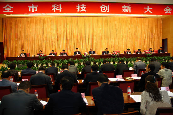 為進一步加強科技創新,推動產業轉型升級,11月1日上午,臨沂市科技創新大會隆重召開,會議對2011年度全市科技創新工作先進單位和2011年度科學技術獎的獲獎組織及個人進行表彰。市委書記張少軍、市長張務峰發表重要講話,市領導徐濤、杜德昌、李峰、左沛廷、尹長友、李剛、關華、林國華、李沂明、侯曉濱等出席會議。 張少軍在講話中指出,近年來,臨沂市認真貫徹落實科學發展觀,深入實施科教興市、人才強市戰略,圍繞傳統產業轉型升級和戰略性新興產業發展,著力提高自主創新能力,深化科技交流合作,推進科技成果轉化運用,科技對經濟社會發展的支撐能力顯著提高。產學研合作反面進展突出,特別是以臨沂市拓普網絡有限公司、常林集團等企業為代表,先后引進了近百名國外高端人才,為經濟社會發展提供了強大智力支撐。 張務峰市長就臨沂市縣域經濟發展狀況、當前宏觀經濟形勢等背景,強調科技創新在“三年倍增、五年跨越”和“過四五、雙翻番”奮進目標當中的作用----加快培植主導產業、加快壯大骨干企業、加快培育新的經濟增長點,都迫切需要科技創新的引領和支撐。