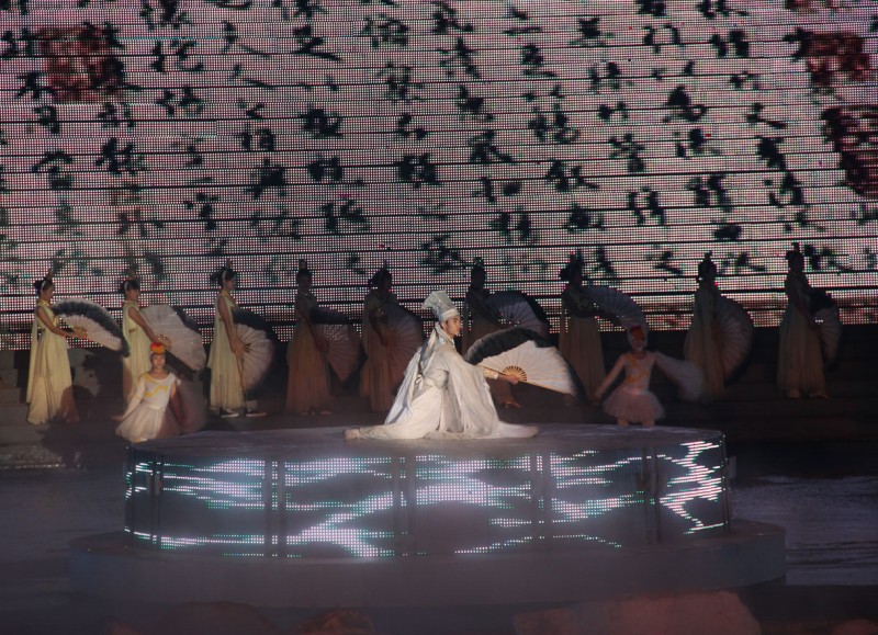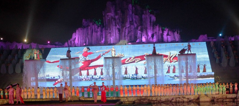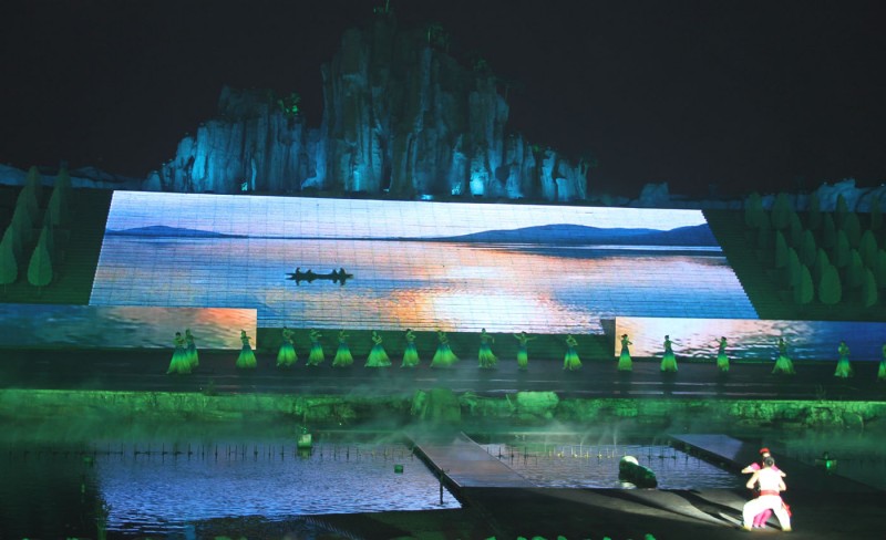 大型實(shí)景演出《蒙山沂水》曾獲第七屆中國(guó)舞蹈“荷花獎(jiǎng)”組委會(huì)特別獎(jiǎng),藝術(shù)再現(xiàn)了臨沂的發(fā)展歷程,反映了獨(dú)具特色的沂蒙文化。整場(chǎng)演出由山高水長(zhǎng)、地靈人杰、熱土情深和印象沂蒙四個(gè)部分組成,利用水幕影像、動(dòng)畫(huà)制作、電腦激光等現(xiàn)代科技,結(jié)合人、景、泉、服、聲、光、電、火、石等元素,巧妙融入臨沂諸多文化精粹,將古時(shí)智圣諸葛亮、書(shū)圣王羲之,革命年代“淵子崖戰(zhàn)役”、“水中火線橋”,經(jīng)濟(jì)騰飛的現(xiàn)代化臨沂等古今文明形象再現(xiàn)。震撼的舞臺(tái)效果,為每一位到場(chǎng)員工呈現(xiàn)出一場(chǎng)文化與視覺(jué)的盛宴。