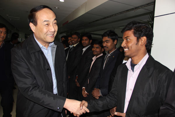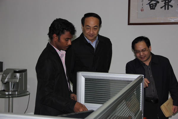 叢局長與印度專家一一握手 叢局長與公司王總親切交流 參觀研發中心
