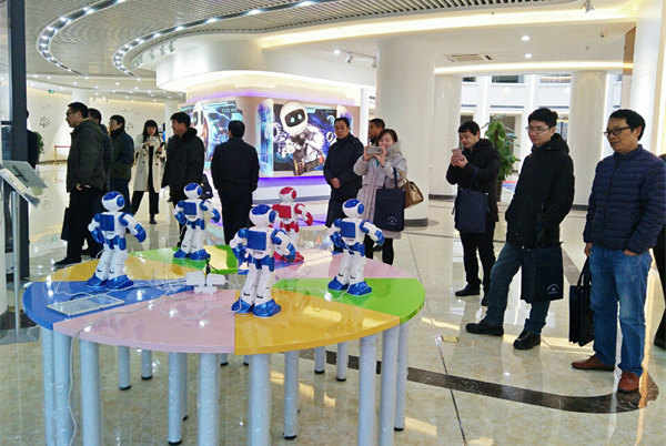 上午合作簽約儀式結(jié)束后,在園區(qū)工作人員的帶領下,與會教師參觀了高科技互動體驗展廳、臨沂智慧教育創(chuàng)客活動中心,在臨沂智慧教育創(chuàng)客中心,大家對充滿科技感的互動體驗充滿了興趣,紛紛在VR海底世界、 VR人體奧秘、智能機器人前駐足體驗高科技帶來的新奇,并對拓普網(wǎng)絡有限公司的科技實力給予高度評價。