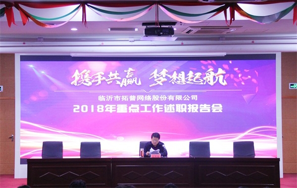 2018年3月3日,臨沂市拓普網(wǎng)絡(luò)股份有限公司“2018年重點(diǎn)工作述職報(bào)告會(huì)”在園區(qū)學(xué)術(shù)報(bào)告廳舉行,全體員工300余人參加了此次大會(huì),公司各部門分管負(fù)責(zé)人分別就本職部門的工作計(jì)劃作具體發(fā)言報(bào)告。