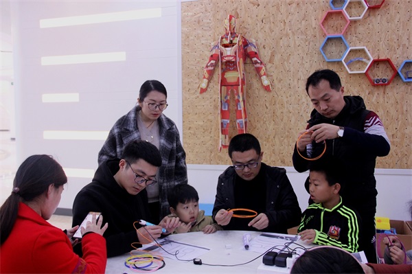 在3D打印課堂,老師與家人們更是親身體驗了虛擬世界與實體世界的有機結合。手握一支神奇的3D打印筆下,老師和孩子們先后體驗了打印眼鏡、吉他等實物,通過親手實踐,大家真正了解了這項高科技的魅力。“真的是感謝科技帶給我們生活,尤其是教育的改變,今天的收獲真是太大了,有機會還要帶孩子再來體驗更多的高科技項目,拓展孩子的思維和創新意識。”參觀結束,一位老師依依不舍地說道。 |