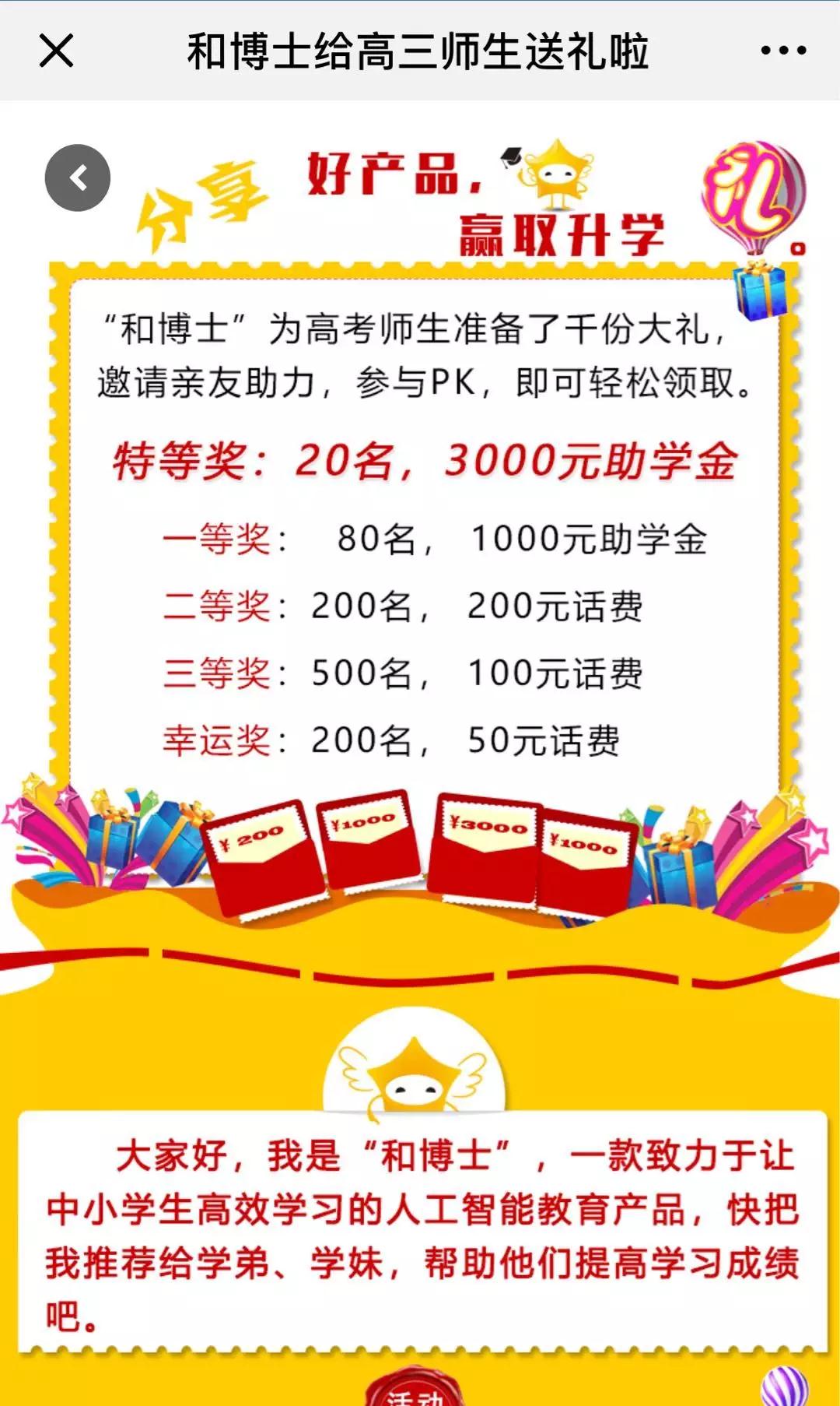 為服務考生,助力高考,和博士特別推出高考季活動,不僅可以為考生們提供高考志愿免費在線服務,而且還有現金大獎可以贏取!快來吧!