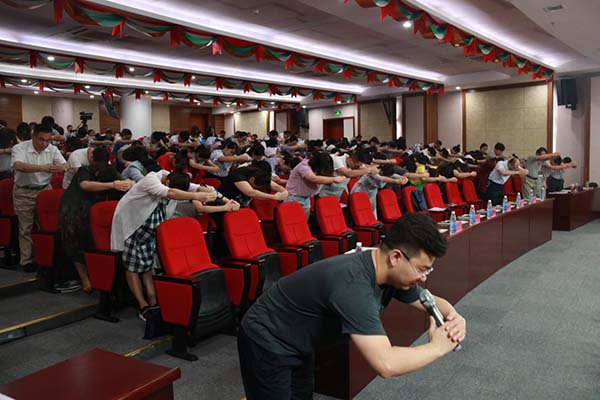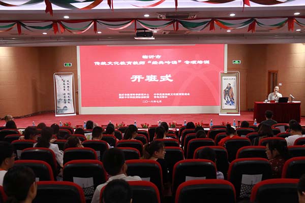 (課前禮儀) 7月10日-13日,由臨沂市教育科學(xué)研究中心主辦,中華優(yōu)秀傳統(tǒng)文化教育促進(jìn)會(huì)、青島出版社、臨沂市拓普網(wǎng)絡(luò)股份有限公司協(xié)辦的臨沂市傳統(tǒng)文化教育教師“經(jīng)典吟誦”專項(xiàng)培訓(xùn)會(huì)在國家中印國際科技創(chuàng)新園成功舉辦,來自臨沂市內(nèi)各縣區(qū)的400余名傳統(tǒng)文化教育教師參與了此次培訓(xùn)。