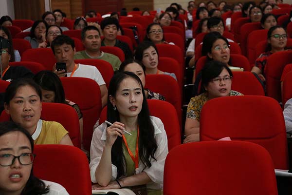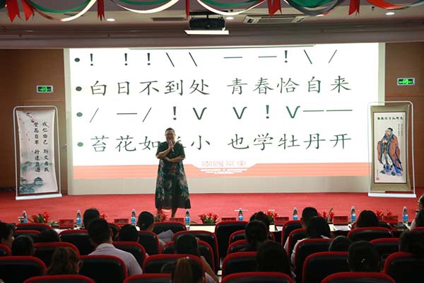 (劉琴宜老師) 會(huì)議邀請(qǐng)了東萊國學(xué)校長(zhǎng)、首都師范大學(xué)校外實(shí)踐導(dǎo)師李寧,南開大學(xué)副教授、央視《百家講壇》欄目主講人、中華吟誦學(xué)會(huì)理事張靜,首都師范大學(xué)副教授、中華吟誦學(xué)會(huì)秘書長(zhǎng)徐健順等多位專家為老師們舉辦了古體詩吟誦、語文吟誦教學(xué)、白話詩吟誦等多場(chǎng)與“經(jīng)典吟誦”這一主題密切相關(guān)的專題講座,老師們從漢語發(fā)音學(xué)起,在一場(chǎng)場(chǎng)精彩的講座中汲取優(yōu)秀傳統(tǒng)文化的精華,走進(jìn)吟誦文化,感知中華文化的博大精深。