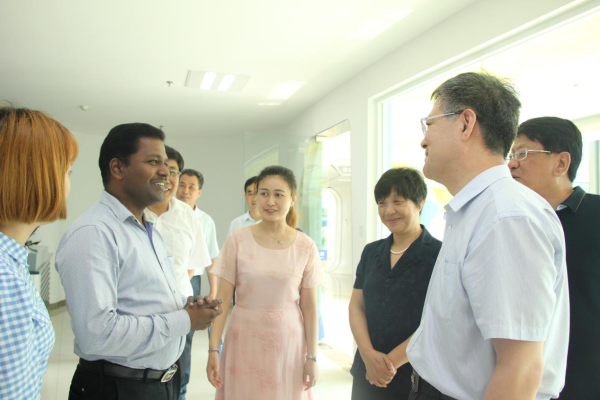 (與印度專家交流) 會議期間,山東省教育廳副廳長白皓、臨沂市副市長張玉蘭、臨沂市教育局黨委書記、局長尹傳斌一行還在公司董事長王嵐保的陪同下參觀園區(qū)研發(fā)中心,體驗山東智慧教育創(chuàng)客活動中心,視察研發(fā)中心、大數(shù)據(jù)中心和教育培訓(xùn)基地等地,聽取了關(guān)于“臨沂市智慧教育云平臺”的相關(guān)報告,并與公司印度專家展開親切交流。白皓一行對拓普智慧教育云平臺充分整合優(yōu)質(zhì)教育教學(xué)和學(xué)習(xí)資源、在線個性化教學(xué)教研、個性化學(xué)習(xí)和教學(xué)管理、教育教學(xué)質(zhì)量和學(xué)生綜合素質(zhì)能力測試評價等多項功能給予高度評價。
