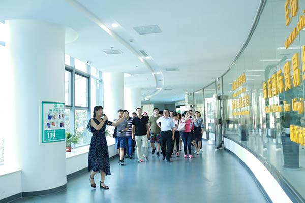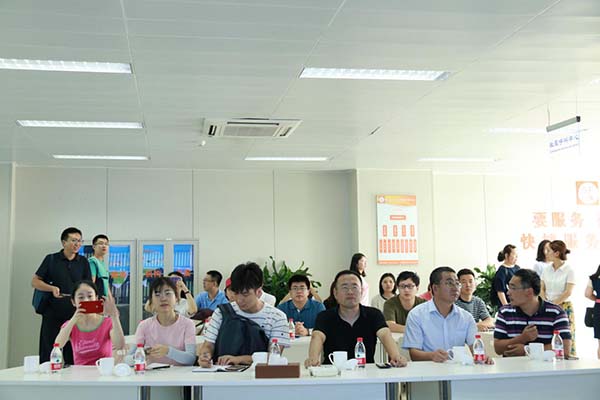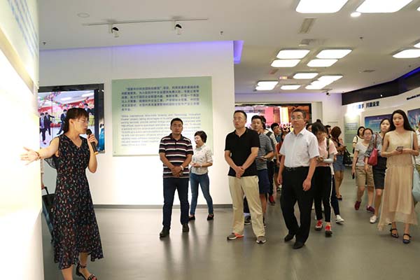 (記者團參觀園區展廳) 據了解,此次活動共有來自人民日報、新華社、求是雜志社、光明日報社、經濟日報社、中央人民廣播電臺、中央電視臺、中國國際廣播電臺、中國日報社、工人日報社等36家媒體的42名編輯參加。
