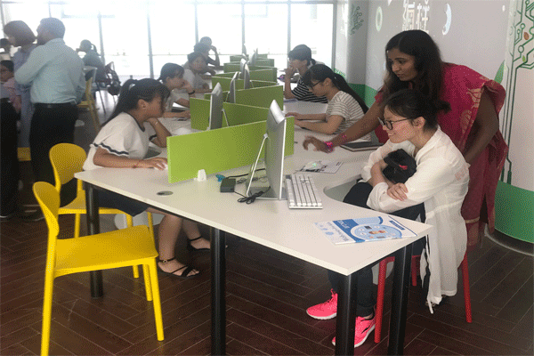 (“小暄一號4G全網通”機器人) “小暄一號4G全網通”機器人是一款擁有動作、情感、語言、表情的家庭陪護機器人。全語音溝通和觸摸交互,獨有的各項人性化智能設置,讓小暄可以輕松成為孩子成長道路上的好伴侶。 在研學創客基地,孩子可以體驗到小暄機器人智能學習、娛樂互動的功能,小暄可以通過人機智能交互的模式調動內置海量學習資源幫助孩子解決學習上的困惑,是孩子的貼身陪讀。小暄的應用中心內,有許多以寓教于樂為主的學習APP和智能DIY系統,引導孩子們趣味學習,輕松學習。 編程課堂 ![]() (少兒編程) 編程課堂由園區內的印度專家團隊親自執教,通過編程游戲啟蒙、可視化圖形編程等課程,培養孩子的計算思維和創新解難能力!讓孩子“編玩邊學”,從沉迷游戲的玩家變成開發游戲的創作者,培養科技嗅覺,鍛煉邏輯思維,激發學習興趣,培養好奇心,探索和研究能力! 免費體驗“和博士”學業測評 園區將開放可容納600余人同時上機的山東教育信息化應用培訓基地,免費供孩子體驗“和博士測評”,幫助孩子及時查漏補缺,提升學習成績。