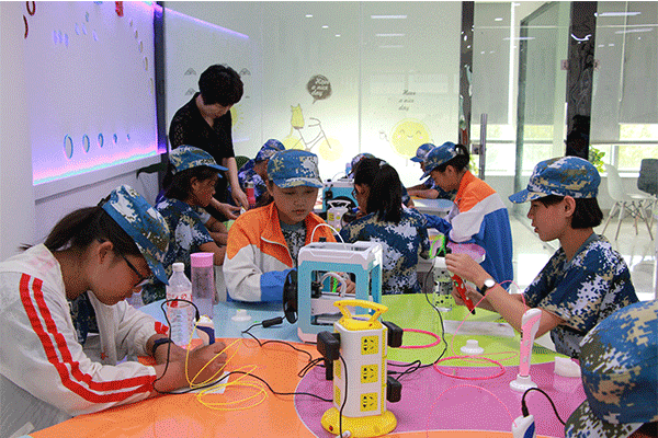 為什么設計的是平面圖形3D打印機卻可以使之立體化?為什么一塊塊不起眼的零件最終能拼插成一個能夠自主行動的機器人?為什么看似簡單易學的空竹抖起來會這么精彩?為什么簡單的電路知識也可以操縱這么復雜的構造?在山東智慧教育創客活動中心綜合實踐區,同學們帶著這些疑問,選修了園區今年夏天最新引進的28間創客教室上百項研學課程中的幾項精品課程。對于這些初中新生而言,基地各項精彩紛呈的創客課程為他們打開了新世界的大門,激發了他們對即將面臨的中學生活的好奇心與信心,使他們能夠帶著疑問,在課程學習中去探索發現,最終在創客課程中找到了答案,更提高了自身的探究能力。
