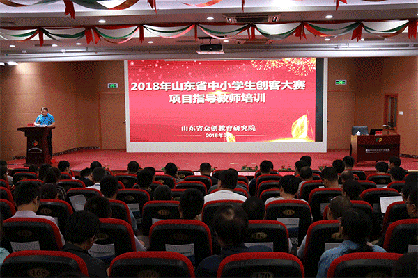 山東省中小學創客大賽項目指導教師培訓會2018年9月19日-21日在國家中印國際科技創新園成功召開,本次培訓會由山東省眾創教育研究院組織舉辦,近300余名來自山東省各地的創客老師參加,本次會議旨在增強創客教師對創客大賽項目要求的理解,進一步提升創客教師的創新素養、實踐能力和指導水平。