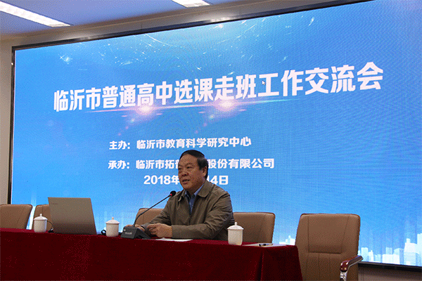 會議現場,沂南縣教研室戴建祥主任首先為大家傳達了山東省課程建設和選課走班會議精神,隨后,臨沂一中、臨沂十九中和蘭陵一中的教師代表分別與大家分享并介紹了各自在“選課走班”和“課程設置”等方面取得的成效和經驗。此外,相關工作人員還在會上向與會人員介紹了由我公司自主研發的拓普網絡選課走班平臺,并對平臺的使用方法進行了培訓。
