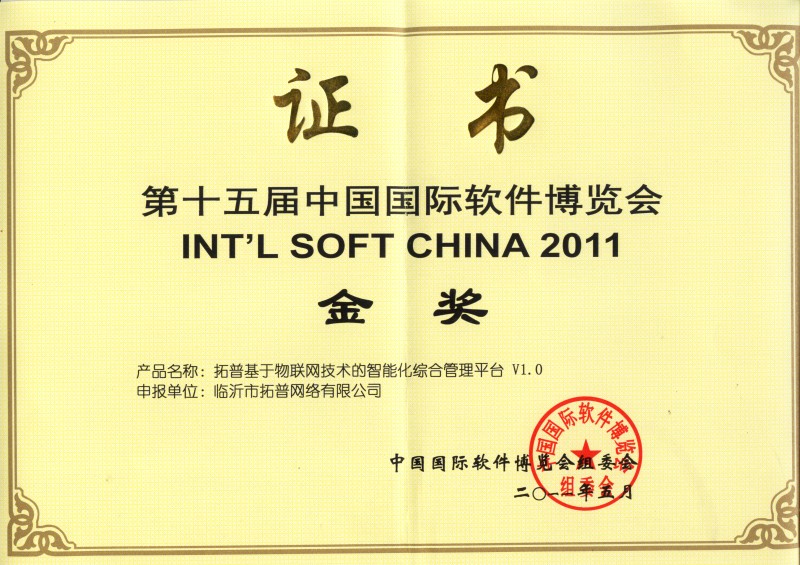 第十五屆中國國際軟件博覽會于2011年5月12日至14日在北京展覽館舉辦。本屆博覽會緊跟“兩會”精神,首次提出了“把握機遇、創新發展、做大做強、服務兩會、深度融合”的新型發展策略,加強了政府、企業、行業及用戶間的交流與合作,對中國的軟件行業起到了重要的促進作用。十二五規劃將軟件產業定為戰略性新興產業,在兩會融合不斷深入推進的過程中,軟博會充分發揮了中間紐帶的作用。本次展會中,我公司自主研發的拓普基于物聯網技術的智能化綜合管理平臺V1.0產品獲得了專家評委的一致好評,摘得此次軟件博覽會的金獎。 拓普網絡一直以來本著“科技發展、人才為本”的理念堅持創新上下求索,以高瞻遠矚的戰略眼光,以強大的社會責任感為感召,引領著現代科技生活,成為魯南軟件行業的領跑者!