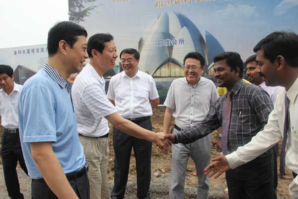 2013年7月13日,商務部中國服務外包研究中心顧問、特邀研究員李庭輝一行視察中印軟件產業園,開發區領導陳永生、尤柳生陪同。 在軟件園工地,李庭輝詳細了解了軟件園的建設發展和未來規劃情況,對公司引進印度專家人才的做法和軟件園的發展情況給予高度評價,他說,中印軟件產業園致力于打造中印軟件產業合作示范基地和國際化軟件產業公共服務平臺,規劃起點高、發展潛力大,加之與SRM集團合作,人才引進和服務外包的力度都走在了魯南地區的前列,顯示出良好的發展前景。 希望在今后的發展過程中,進一步確定科學的發展重點和目標,針對國際市場需求,規劃好發展的定位和方向,增強發展的內生動力,持續推動臨沂軟件產業健康快速發展。 視察軟件園工地與印度專家親切交流
