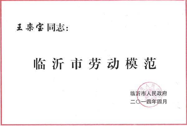 近日,在全市慶祝“五一”國際勞動節(jié)暨勞動模范、模范集體表彰大會上,公司總經(jīng)理王嵐保被臨沂市人民政府授予“臨沂市勞動模范”稱號。