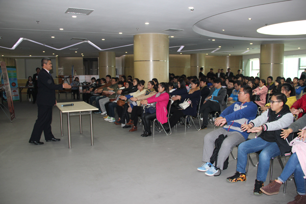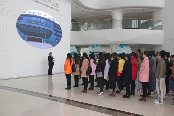 學生參觀中印軟件產業園展廳 招聘會開始前,與會的學生參觀了中印軟件產業園,會后,學生在中印軟件產業園餐廳享受了豐盛的午餐。 |