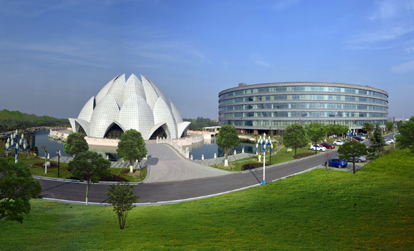 中印軟件產業園實景圖 對比照片上的蘋果新園區和我公司建設的中印軟件產業園,發現二者可以用“酷似”來形容。整個建筑群都是一個大大的圓環,圓圈中間是綠地公園,公園中心位置都有一座湖,像是一處封閉的“植物園”,包括環形建筑采用的玻璃幕墻,都一模一樣。