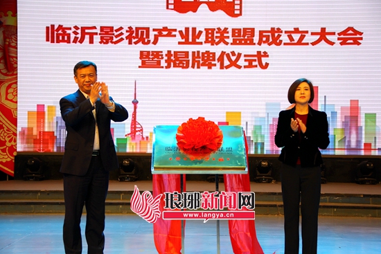 臨沂市委常委、宣傳部長林國華(右一),山東影視傳媒集團副總經理牛煙生出席臨沂影視產業聯盟成立大會,并為臨沂影視產業聯盟揭牌 臨沂影視產業聯盟由臨沂市廣播電視臺、市委宣傳部文化體制改革發展領導小組辦公室共同發起,聯合本市的影視制作生產機構,網絡視聽機構,播出機構和從事相關產業發展的企事業單位,按照平等自愿的原則發起成立的,目的是為了進一步整合臨沂市優質影視資源,培養優秀影視人才,健全和延長產業發展鏈條,將臨沂影視產業整體打造提升為國內一流的影視產業平臺,推動我市文化產業跨越發展。臨沂影視產業聯盟歷經三個月的宣傳發動及推薦申報,首批共吸納163家影視相關企業加入。
