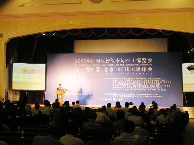 北京展覽館 會議日程 相關(guān)論壇 ![]() 國家金卡辦主任、中國RFID產(chǎn)業(yè)聯(lián)盟理事長張琪致開幕詞 2009年6月3日至5日,公司參加了2009中國國際智能卡與RFID博覽會和第七屆中國(北京)RFID國際峰會。這次展會共有來自中國(兩岸三地)、英國、德國、日本、韓國、新加坡等國家的約150家智能卡和電子標(biāo)簽(RFID)相關(guān)企業(yè)參展,總計(jì)約600人參加了開幕式。